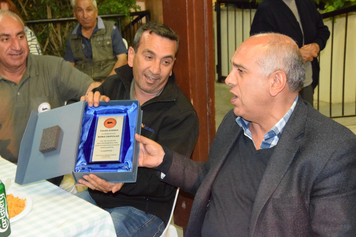 Ο Κυνηγετικός Σύλλογος Κορμακίτη « Η ΛΑΟΤΡΥΠΑ» τίμησε τον πρόεδρο της Κόκο Σκούλλο για την στήριξη και προσφορά του προς το κυνηγετικό τους σύλλογο.
