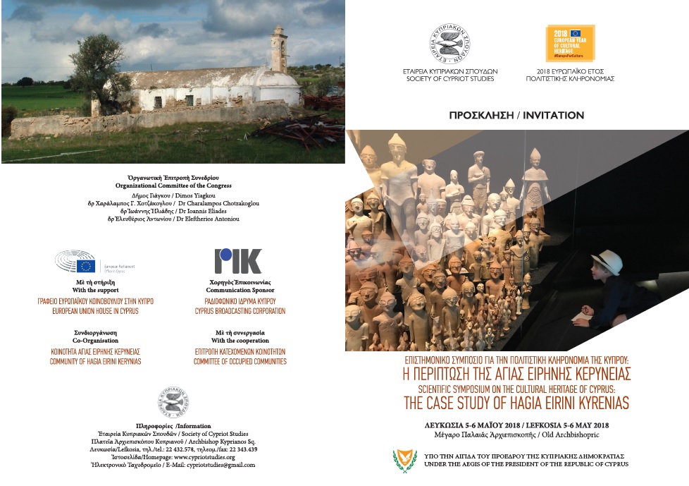 Πραγματοποιήθηκε το Σαββατοκύριακο 5-6 Μαΐου 2018, στο Μέγαρο Παλαιάς Αρχιεπισκοπής στην Λευκωσία το επιστημονικό συμπόσιο για την Πολιτιστική κληρονομιά της Κύπρου με τίτλο: Η Περίπτωση της Αγίας Ειρήνης Κερύνειας».