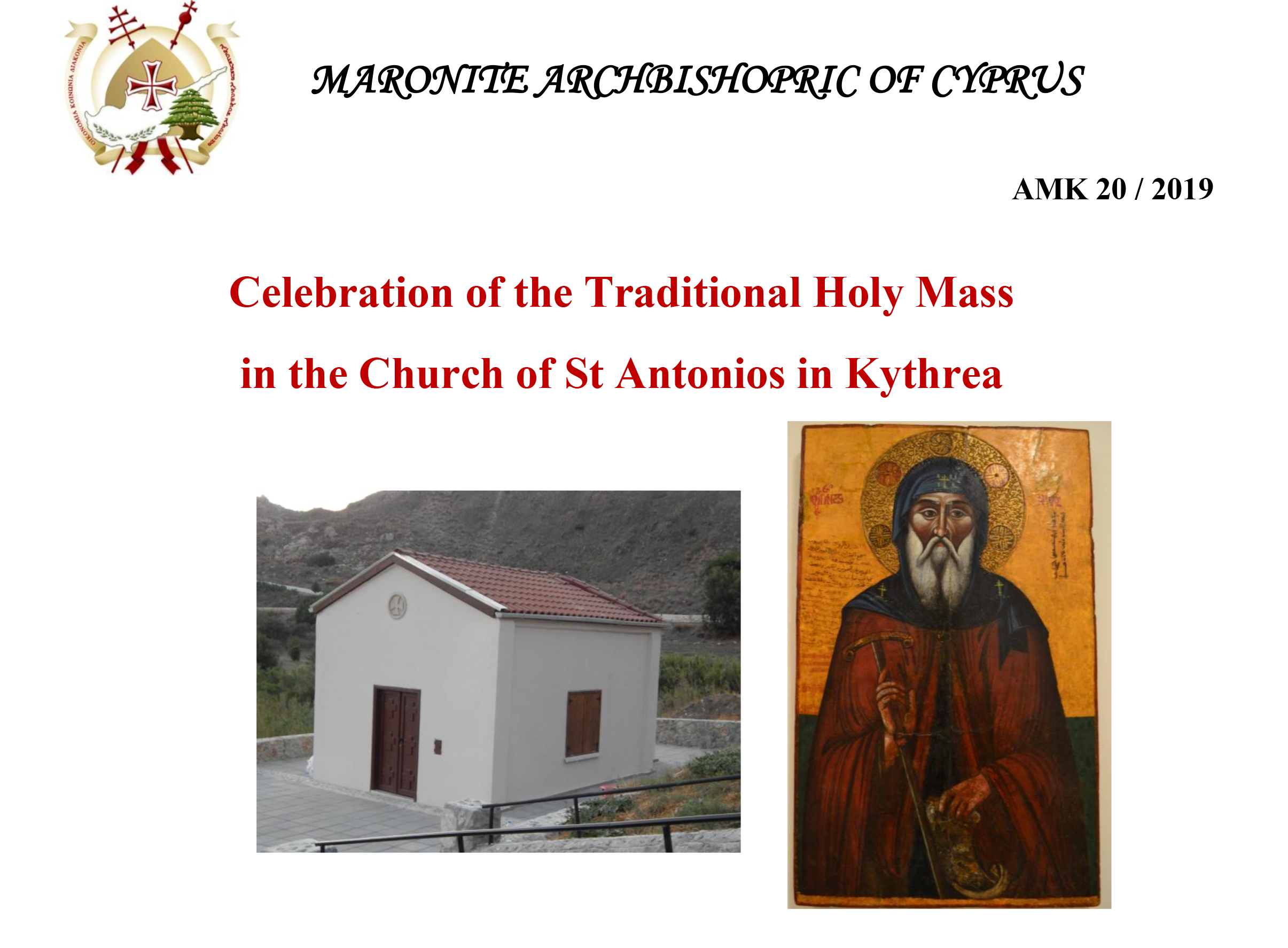 H.E. the Maronite Archbishop of Cyprus Youssef Soueif will preside the Holy Mass for the Feast of St. Antonios to be celebrated in the Church of St Antonios in Kythrea on Monday 2nd September, 2019 at 6.00 p.m.