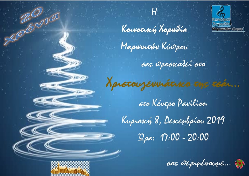 Η Κοινοτική χορωδία Μαρωνιτών Κύπρου σας προσκαλεί στο Χριστουγεννιάτικο της τσάι… στο κέντρο Pavilion .