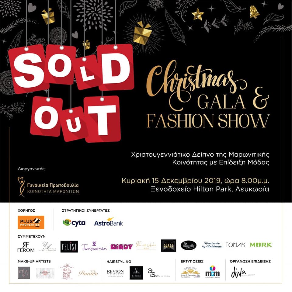 Με χαρά ανακοινώνω την εξάντληση των εισιτηρίων εισόδου για το Christmas Gala & Fashion Show της Μαρωνιτικής Κοινότητας. Το μεγαλύτερο κοσμικό γεγονός της χρονιάς για την Κοινότητα θα πραγματοποιηθεί την Κυριακή 15 Δεκεμβρίου 2019, στις 8.00 μ.μ. στο ξενοδοχείο Χίλτον Παρκ στη Λευκωσία.