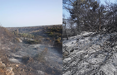 Η φωτιά έκαψε και ένα μεγάλο μέρος της περιοχής του Άγιου αλλά ευτυχώς την περιόρισαν και την κατέσβησαν στην περιοχή Κοτσινόγκρεμος.