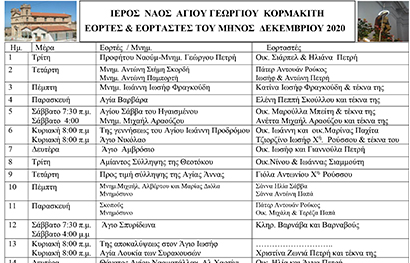 Έχει ετοιμαστεί από τον εφημέριο του Κορμακίτη Πάτερ Αντουάν Ρούκκος το ενημερωτικό του Ιερού Ναού του Αγίου Γεωργίου Κορμακίτη για το μήνα Δεκέμβριο.