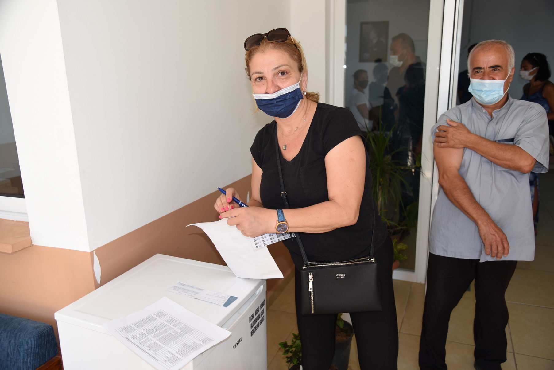 Κατά τον εμβολιασμό την Μαίρη Σκούλλου, για την ετοιμασία των καρτών εμβολιασμού, την βοηθούσε η Ελένη Σκούλλου Κρασιά.