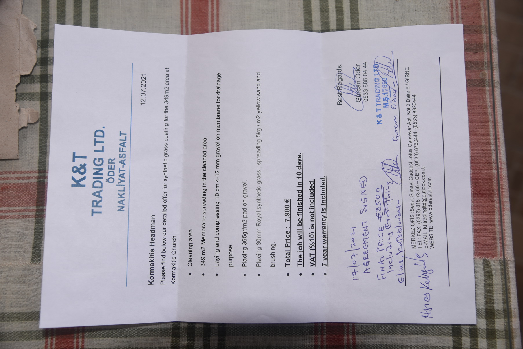 Υπογράφηκε σήμερα το πρωί, Σάββατο 17 Ιουλίου 2021, συμφωνία του Κοινοτικού Συμβουλίου με την εταιρεία K&T TRADING LTD για την κατασκευή γηπέδου ποδοσφαίρου Σάλας στον χώρο του Πάρκου Παναγίας. Ο χώρος έχει εμβαδόν 349 τετραγωνικά μέτρα και θα καλυφθεί από πλαστικό γρασίδι ακολουθώντας όλες τις προδιαγραφές για την κατασκευή του γηπέδου.