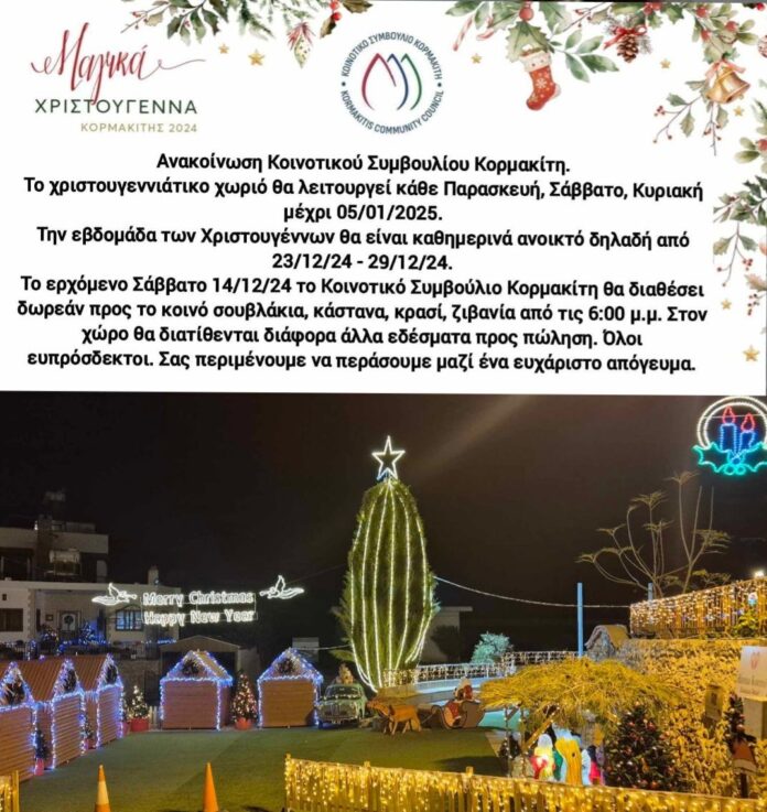 Ανακοίνωση Κοινοτικού Συμβουλίου Κορμακίτη για το Χριστουγεννιάτικο Χωριό