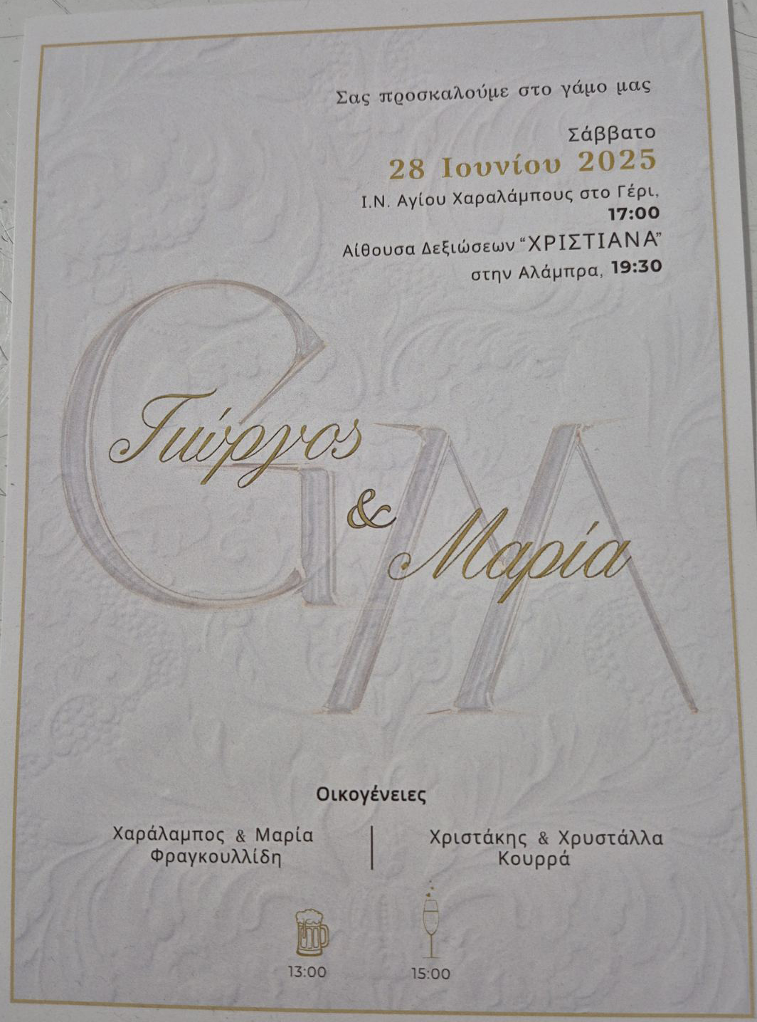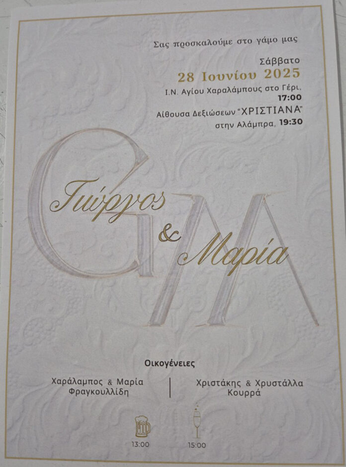Πρόσκληση γάμου Γιώργος & Μαρία