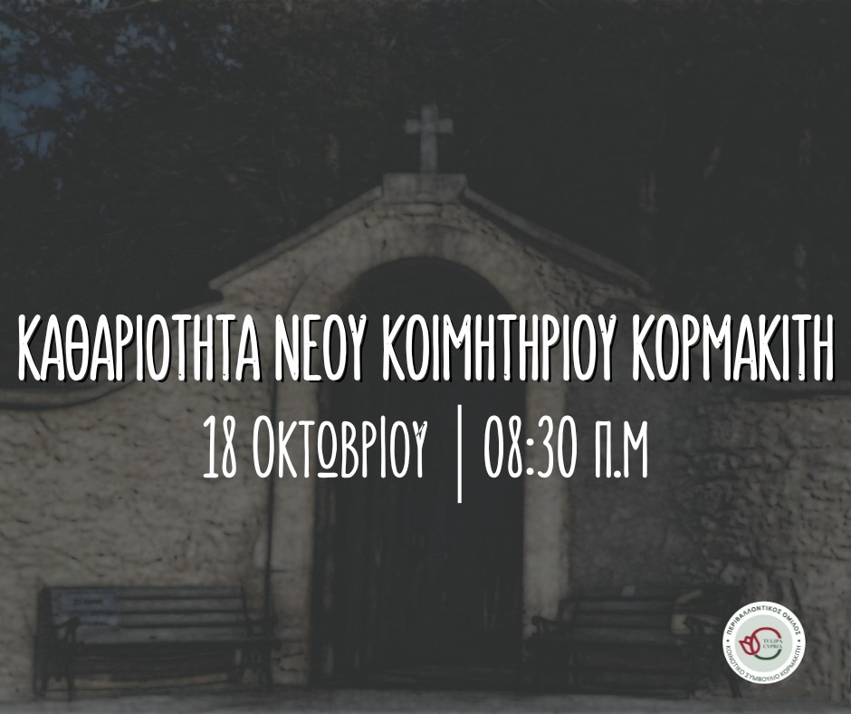 Ο Περιβαλλοντικός Όμιλος Κορμακίτη και το Κοινοτικό Συμβούλιο Κορμακίτη διοργανώνουν καθαριότητα του Νέου Κοιμητηρίου.