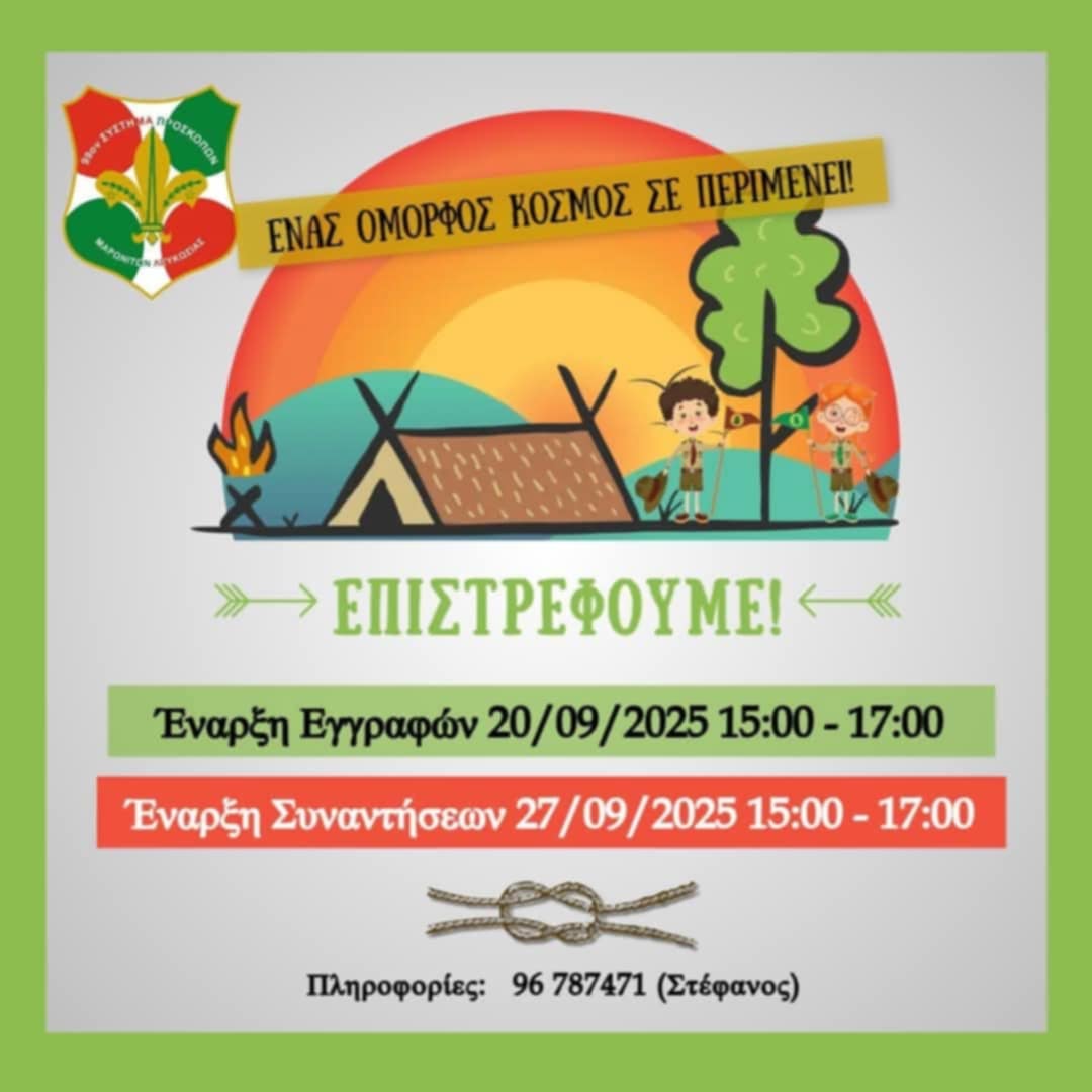 Το Σάββατο 27 Σεπτεμβρίου θα έχουμε την πρώτη μας συνάντηση και θα σας περιμένουμε να παίξουμε, να γελάσουμε, να τραγουδήσουμε και να … σας πείσουμε να γίνετε μέλη μιας όμορφης Προσκοπικής οικογένειας που δεν θα βρείτε αλλού!
