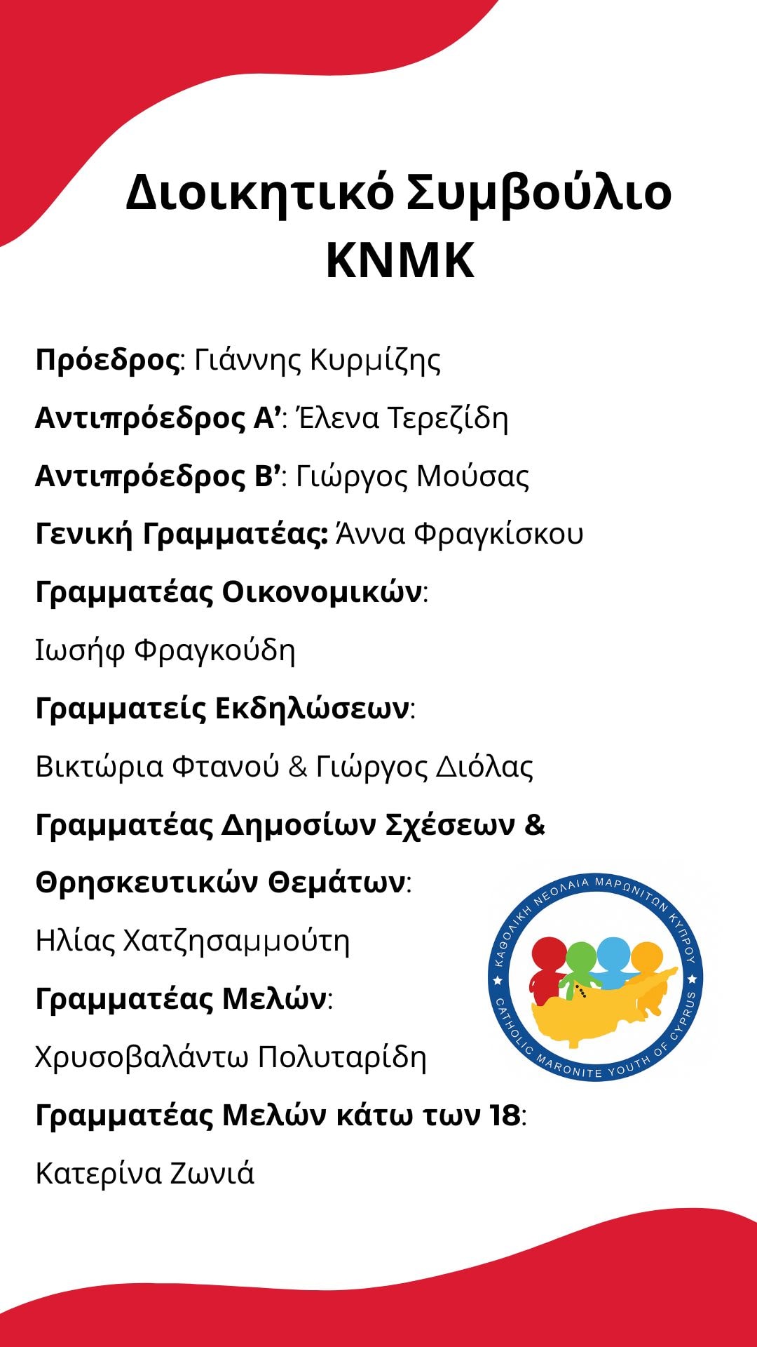 Η ιστοσελίδα μας εύχεται στο νέο Δ.Σ. της ΚΝΜΚ κάθε επιτυχία στο δύσκολο έργο που έχουν να επιτελέσουν και καλή δύναμη για το καλό της νεολαίας μας και την κοινότητας μας.