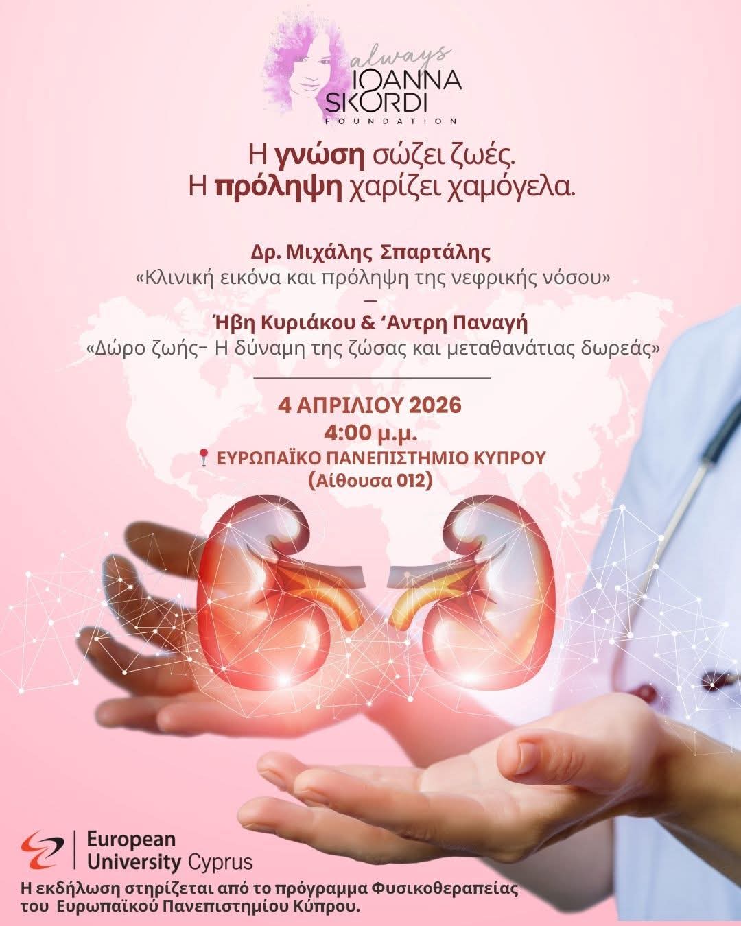 🤝 Η εκδήλωση στηρίζεται από το Πρόγραμμα Φυσικοθεραπείας του Ευρωπαϊκού Πανεπιστημίου Κύπρου.